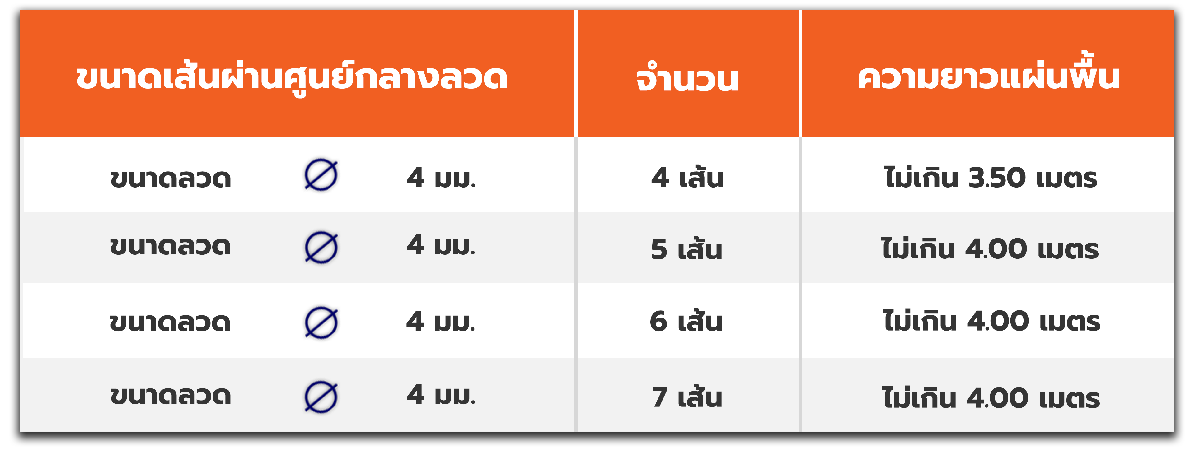 การรับน้ำหนัก LIVE LOAD (กก./ตร.ม.) 200 กก./ตร.ม. ขึ้นไปถึง 500 กก./ตร.ม. คอนกรีตทับหน้า 4 - 5 เซนติเมตร