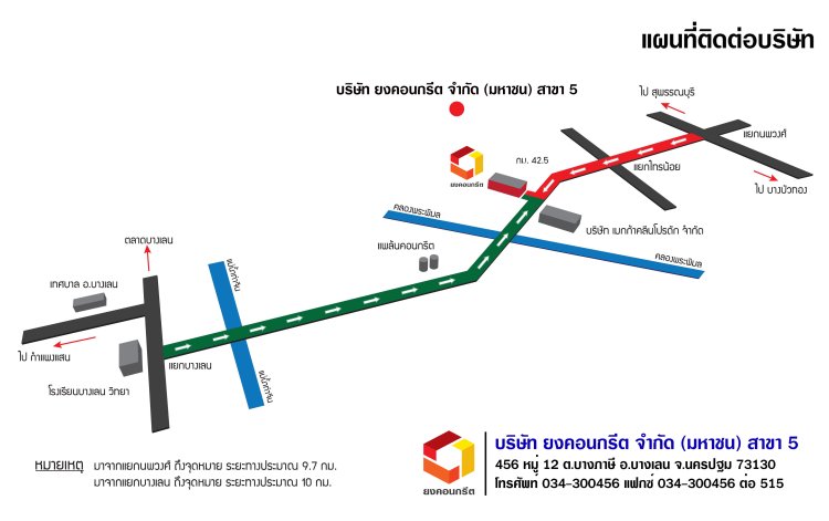 ที่อยู่ : 456 หมู่ 12 ตำบลบางภาษี อำเภอบางเลนจังหวัดนครปฐม 73130โทร : 034-300456แฟกซ์ : 034-300456 ต่อ 515ฝ่ายขาย : 062-596-2451, 097-946-5926คุณอำนาจ : 095-971-9561, 092-262-5641Line ID : yong.-11