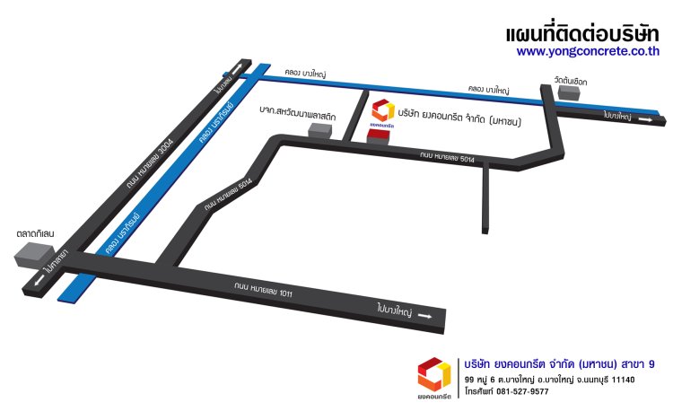 บริษัท ยงคอนกรีต จำกัด (มหาชน) สาขาบางใหญ่ที่อยู่ : 99 หมู่ 6 ตำบลบางใหญ่ อำเภอบางใหญ่จังหวัดนนทบุรี 11140โทร : 081-527-9577